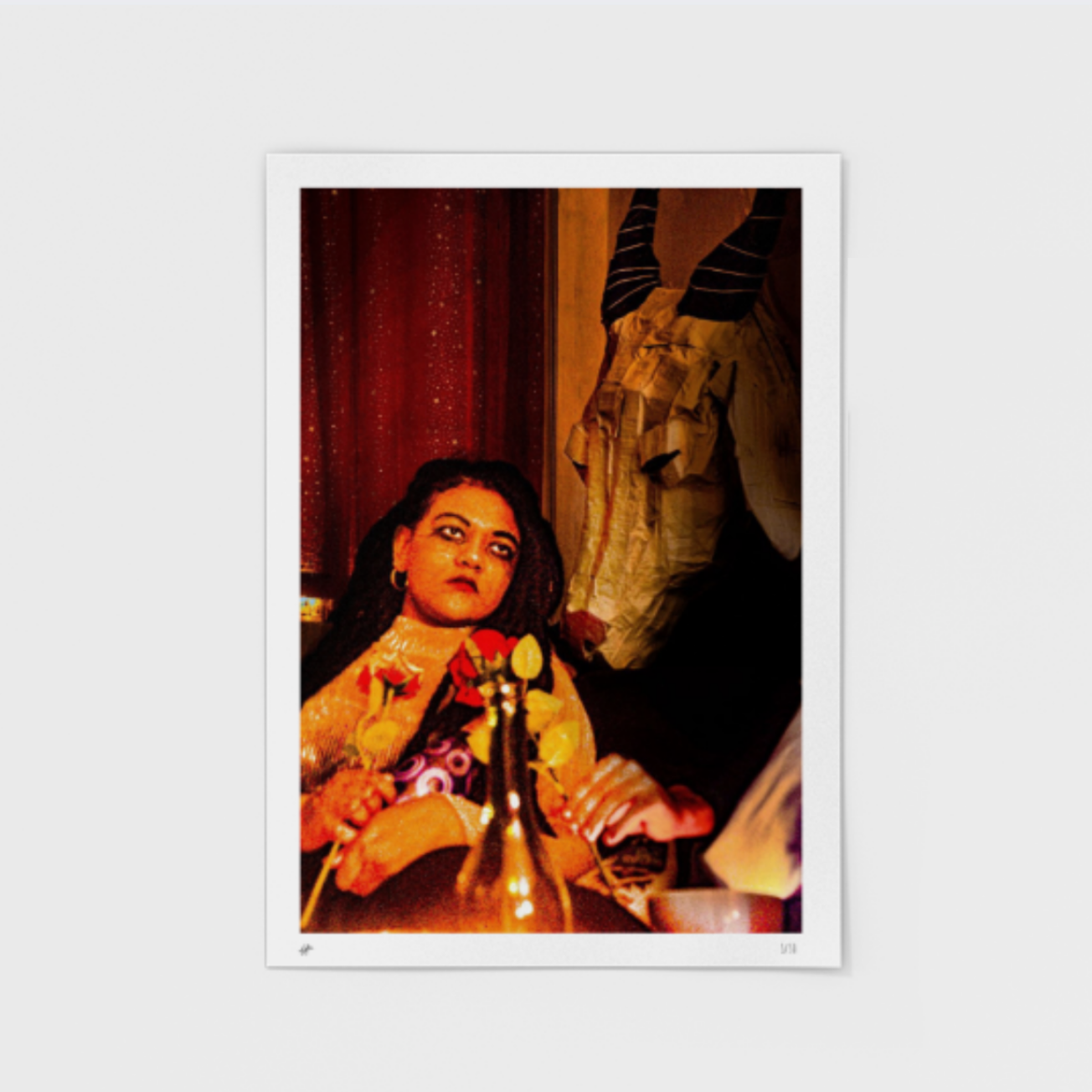 Cette œuvre réalisé en 2023 par Alixe Gauvin est intitulée "The devil did come". Une photographie mise en scène qui capture un moment de tension et de confrontation intérieure. On y voit une jeune femme, submergée, qui tente d'ignorer une entité à tête de chèvre. Cette créature n'est pas un démon extérieur, mais la représentation des démons personnels de la jeune femme : ses mauvaises habitudes, ses peurs, ses travers.